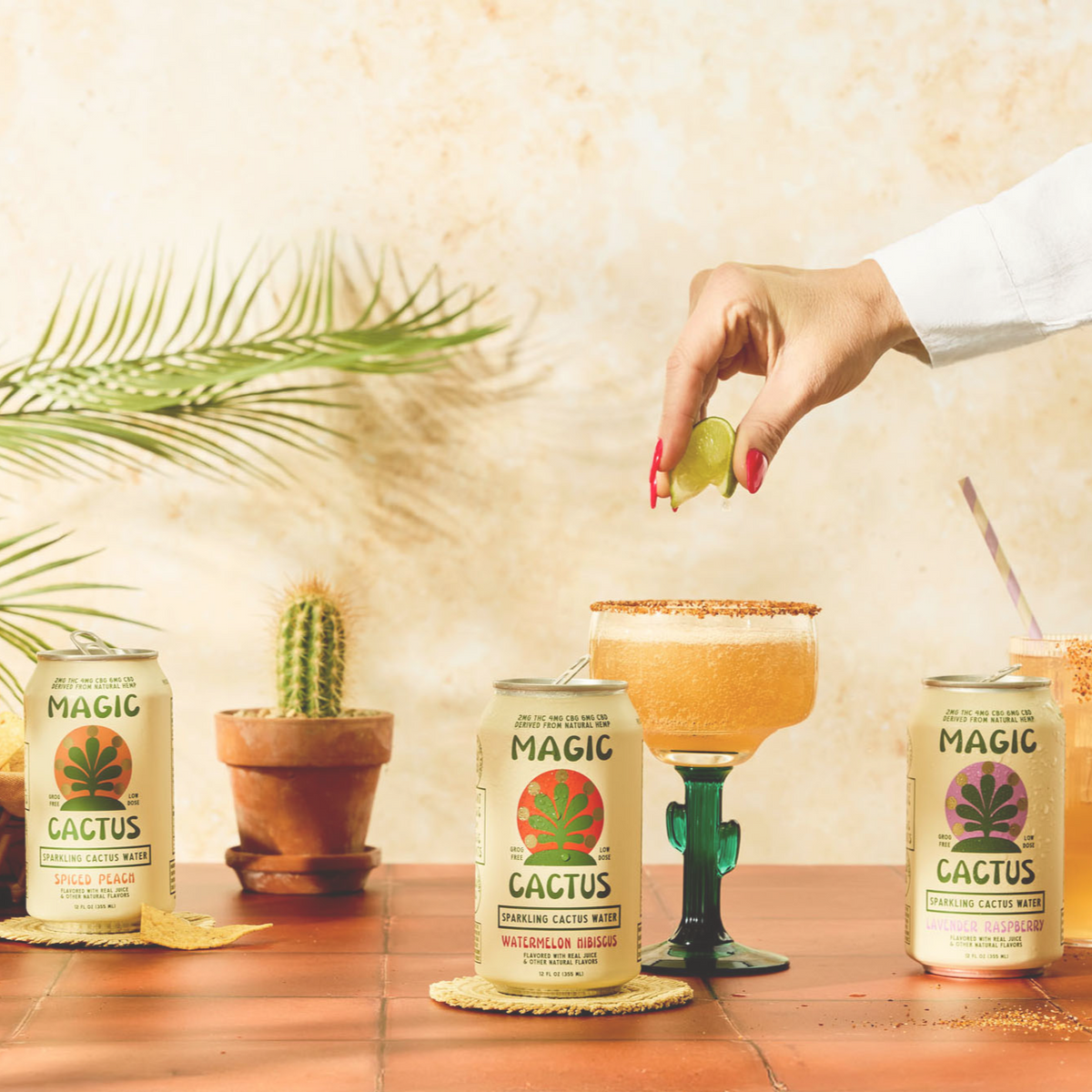 Magic Cactus is a modern beverage with real, functional ingredients crafted for those looking for a non-toxic buzz with benefits. Every Magic Cactus beverage has a sparkling cactus water base with added potassium, magnesium, l-theanine and a unique combination of the following hemp-derived cannabinoids: CBG, CBD, and a microdose of Delta-9 THC.